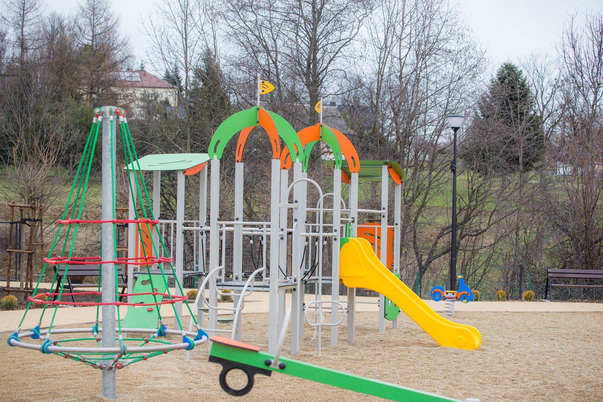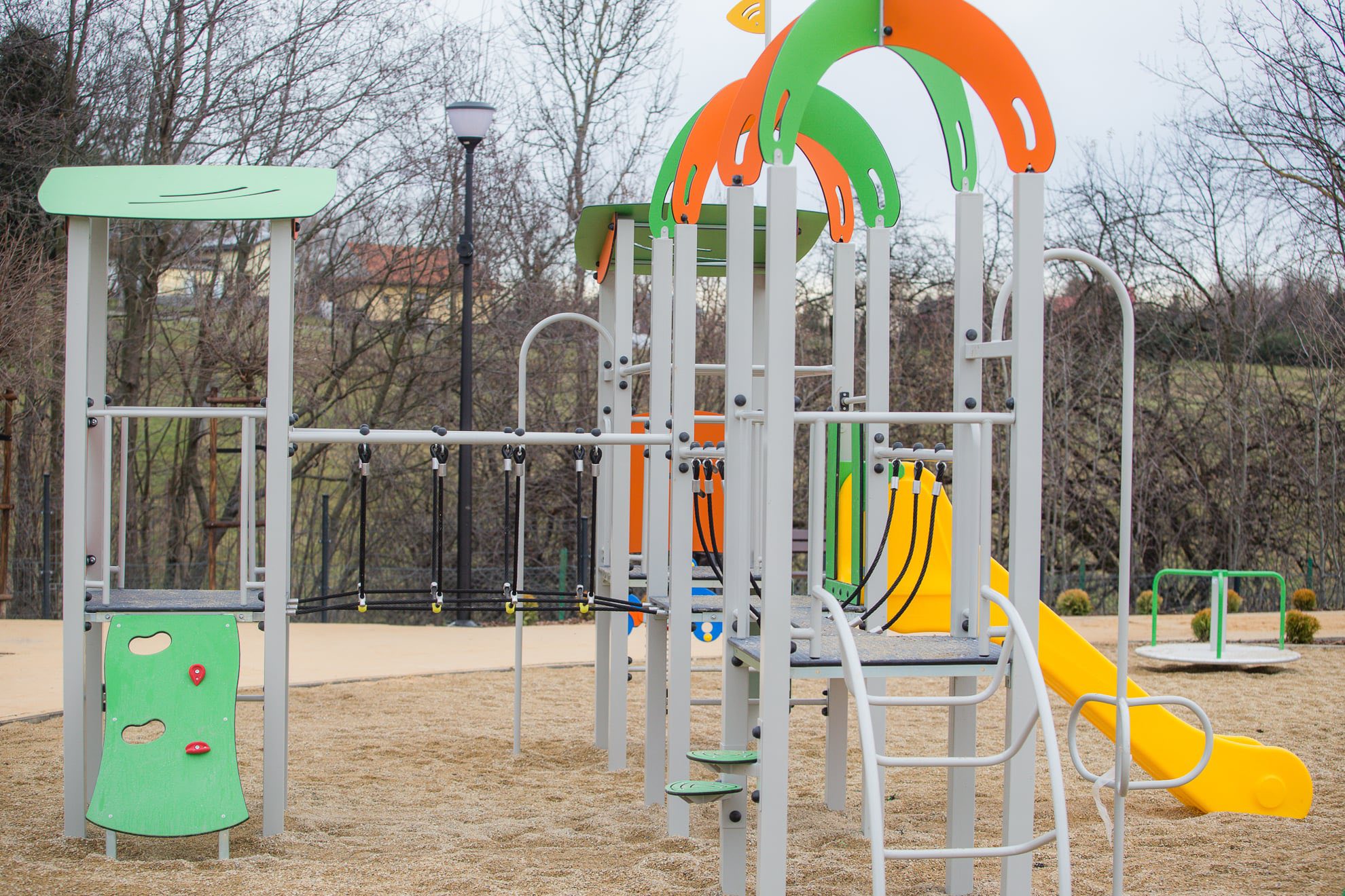 W ramach realizacji zadania wykonane zostały elementy małej architektury takie jak ławki czy oświetlenie, a głowną część placu wypełniły urządzenia zabawowe i sportowe. Dopełnieniem całości są ścieżki piesze i zegar słoneczny. Zakres robót obejmował również przeniesienie wiaty, stojaka dla rowerów i punktu serwisowania dla jednośladów.