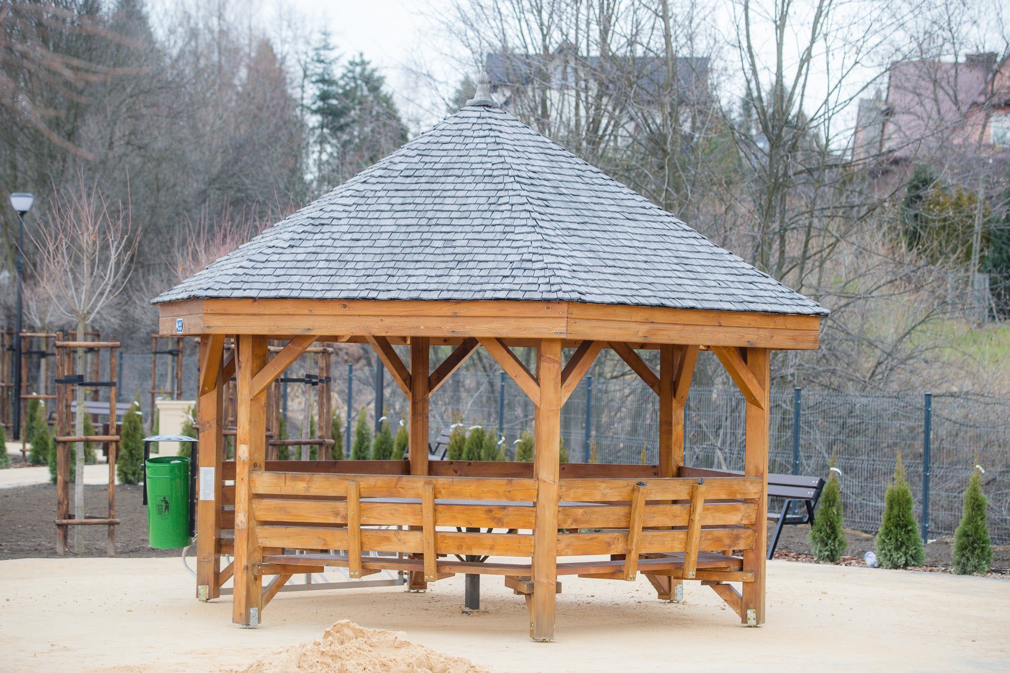 Posadzone zostały krzewy i drzewa, a wiosną zasiana zostanie trawa, co w połączeniu z widokiem na Tatry nada temu miejscu niepowtarzalnego uroku.