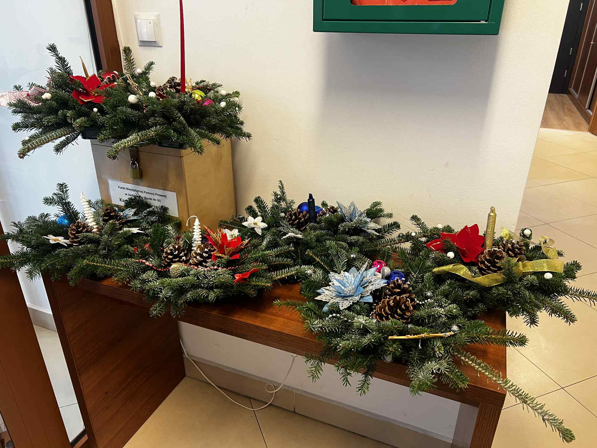 Ozdoby zostały przygotowane przez uczestników warsztatów, którzy z zaangażowaniem i kreatywnością tworzyli dekoracje na nadchodzący okres Bożego Narodzenia.