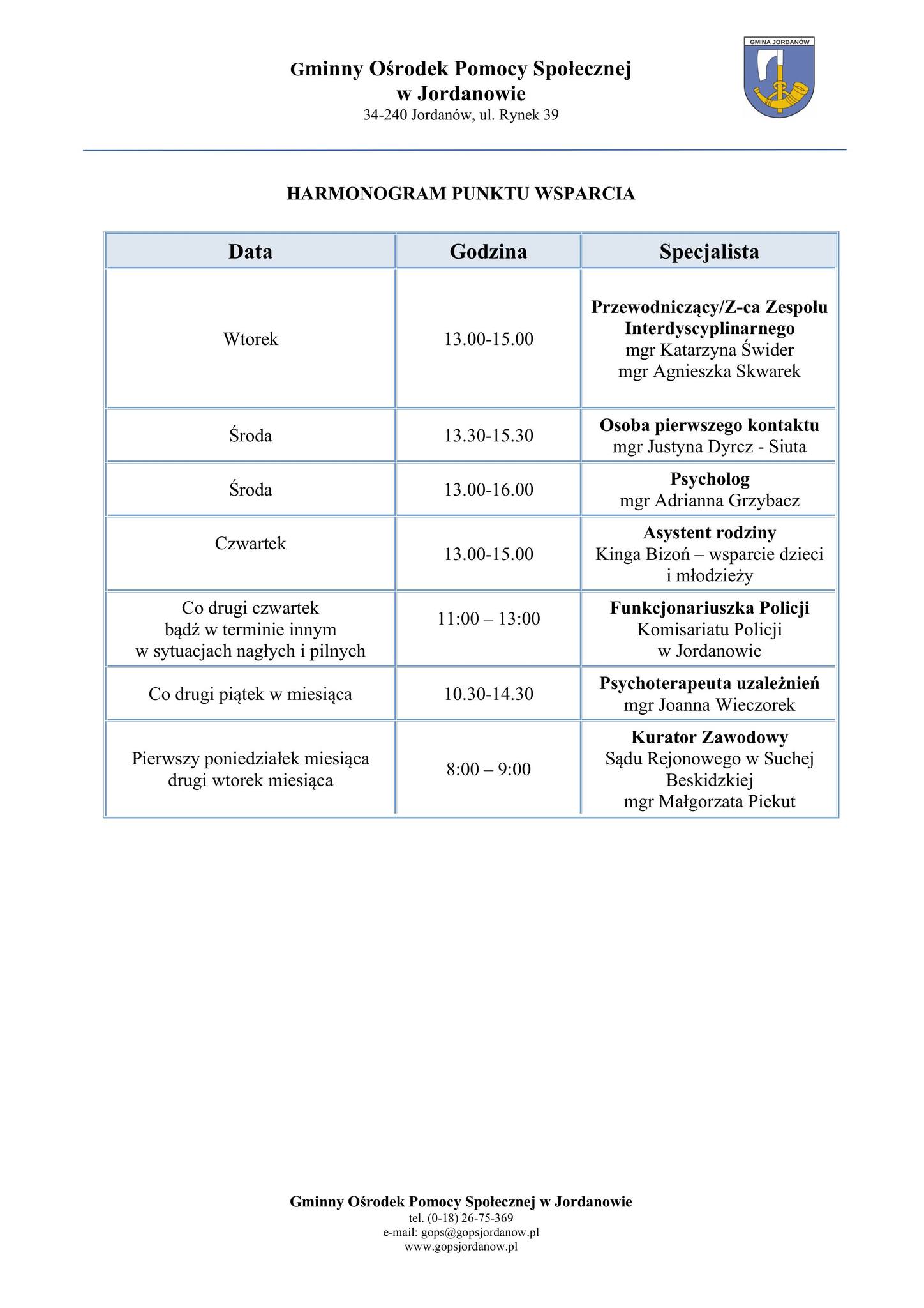 Harmonogram Punktu Wsparcia