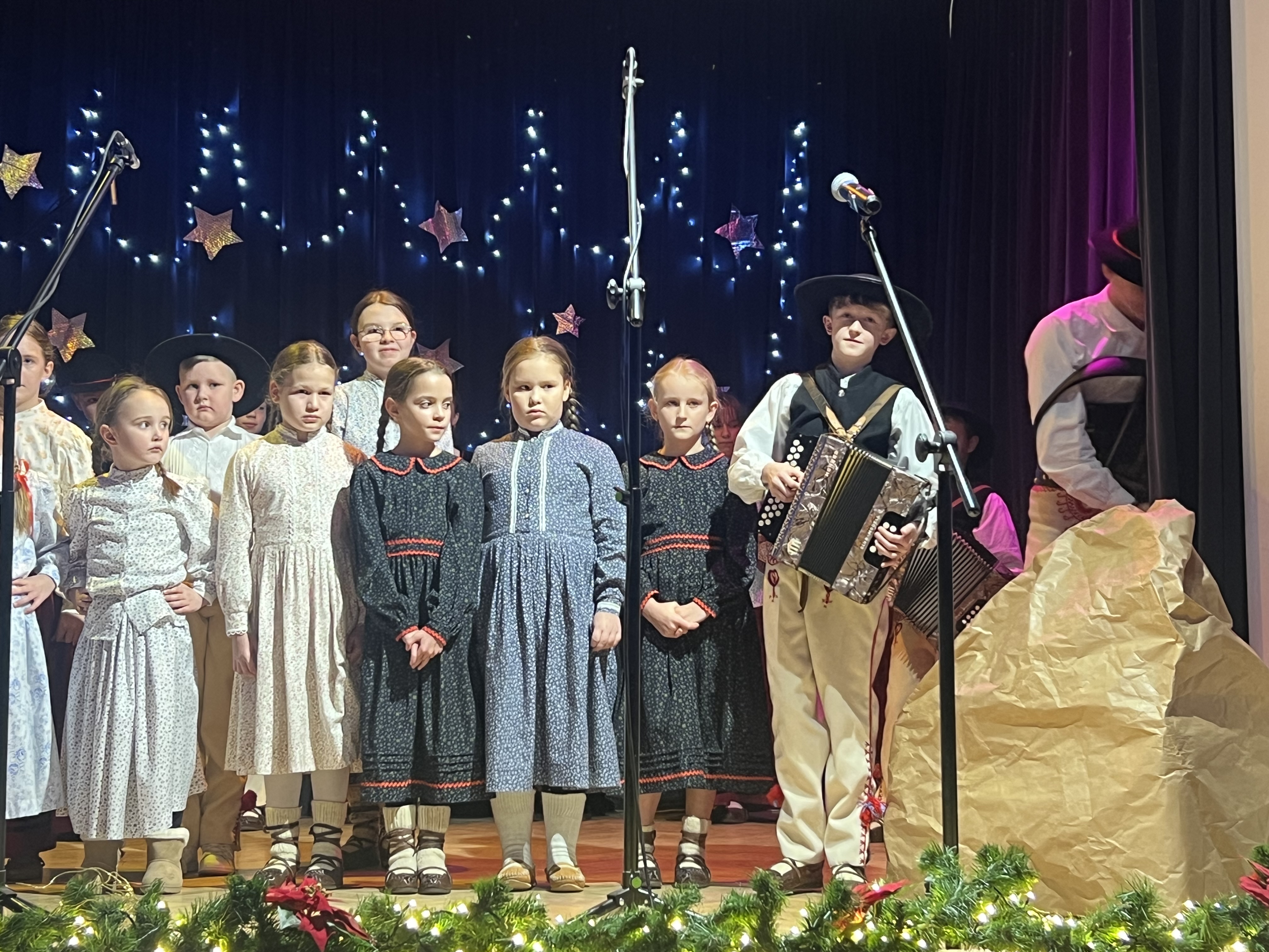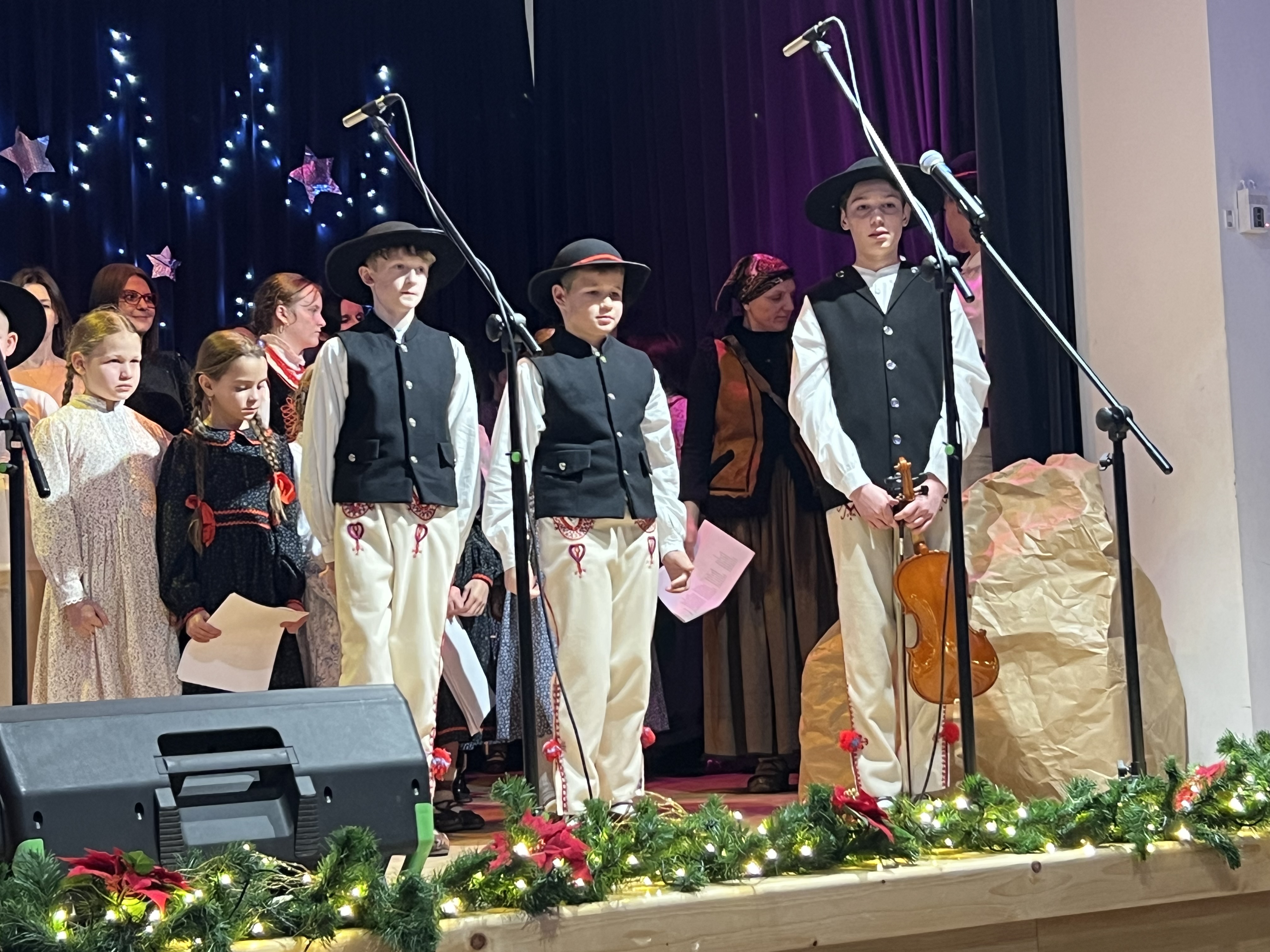 Zwieńczeniem koncertu były góralskie życzenia noworoczne, złożone przez kolędników z Zespołu Regionalnego “Gronie”, które spotkały się z entuzjastycznym przyjęciem publiczności.