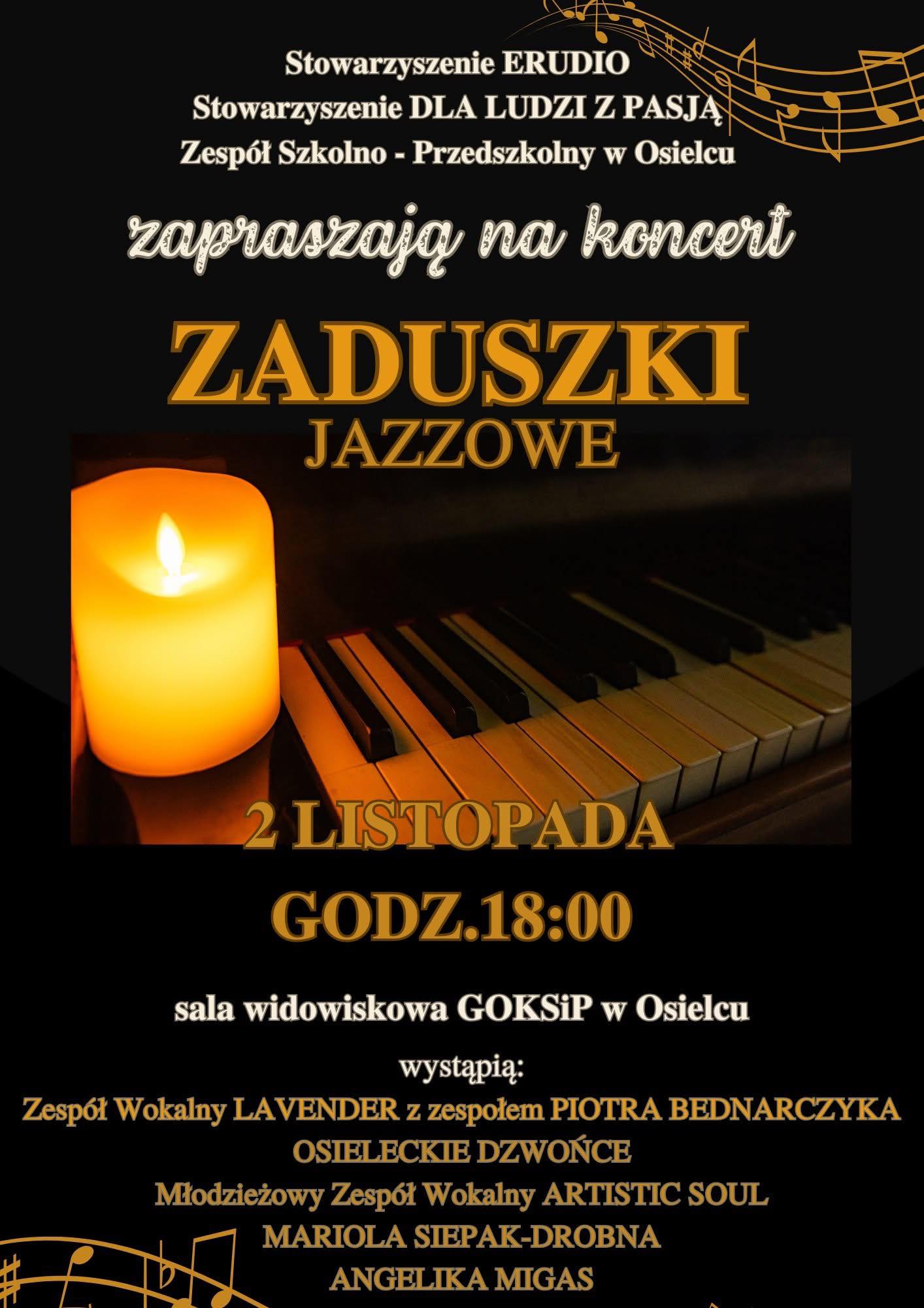 W imieniu organizatorów serdecznie zapraszamy na "Zaduszki Jazzowe". Szczegóły na plakacie.