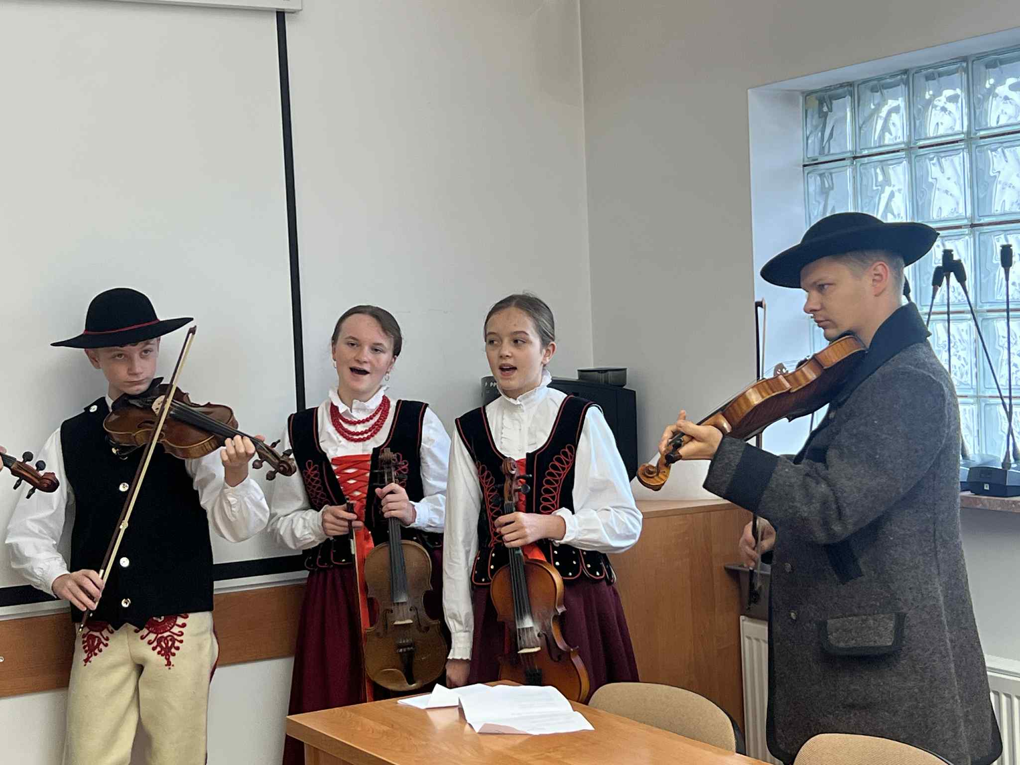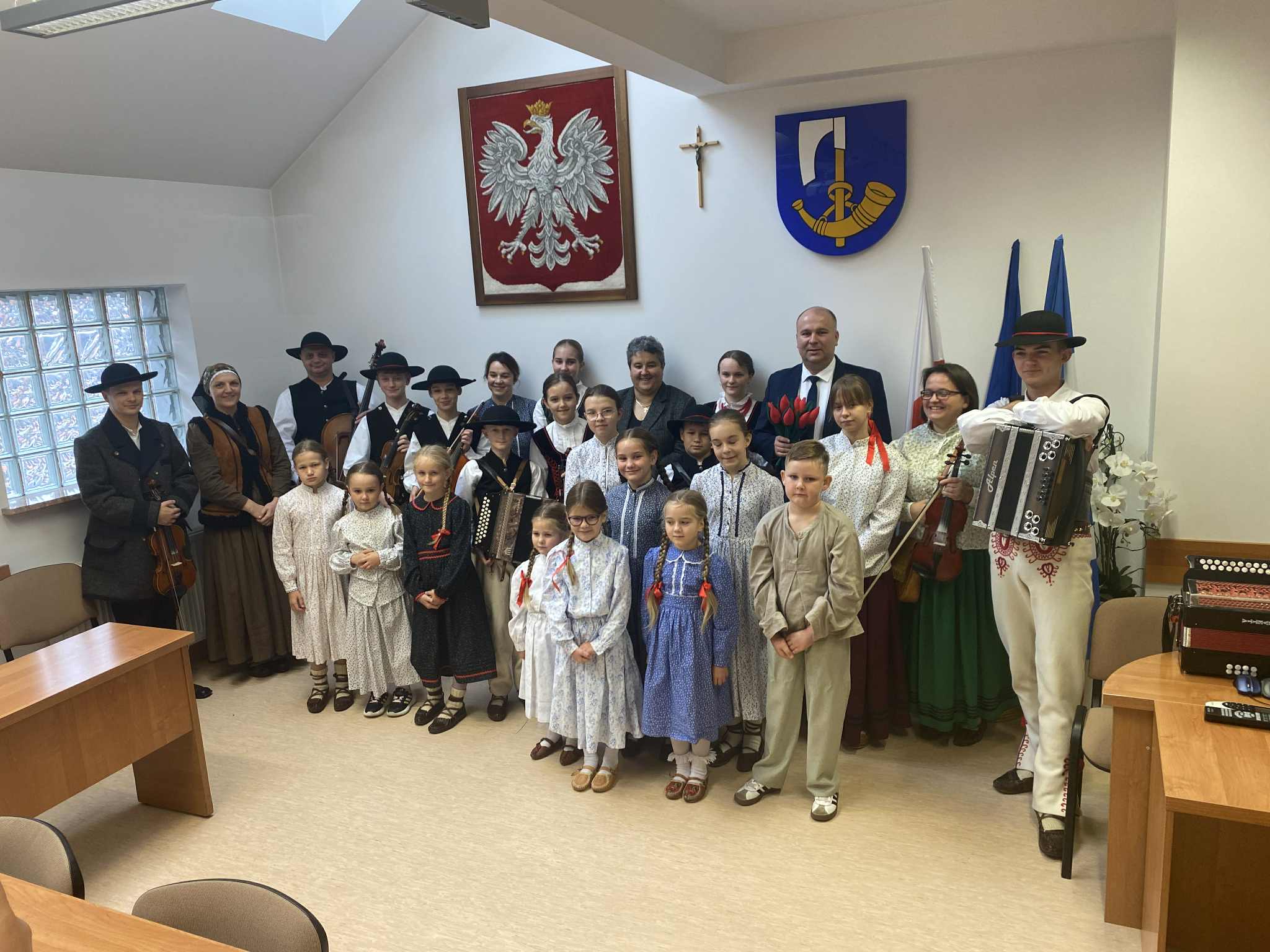 Z muzyką i śpiewem w przepięknych regionalnych strojach do Urzędu Gminy w Jordanowie zawitał zespół „Gronie” z Łętowni.