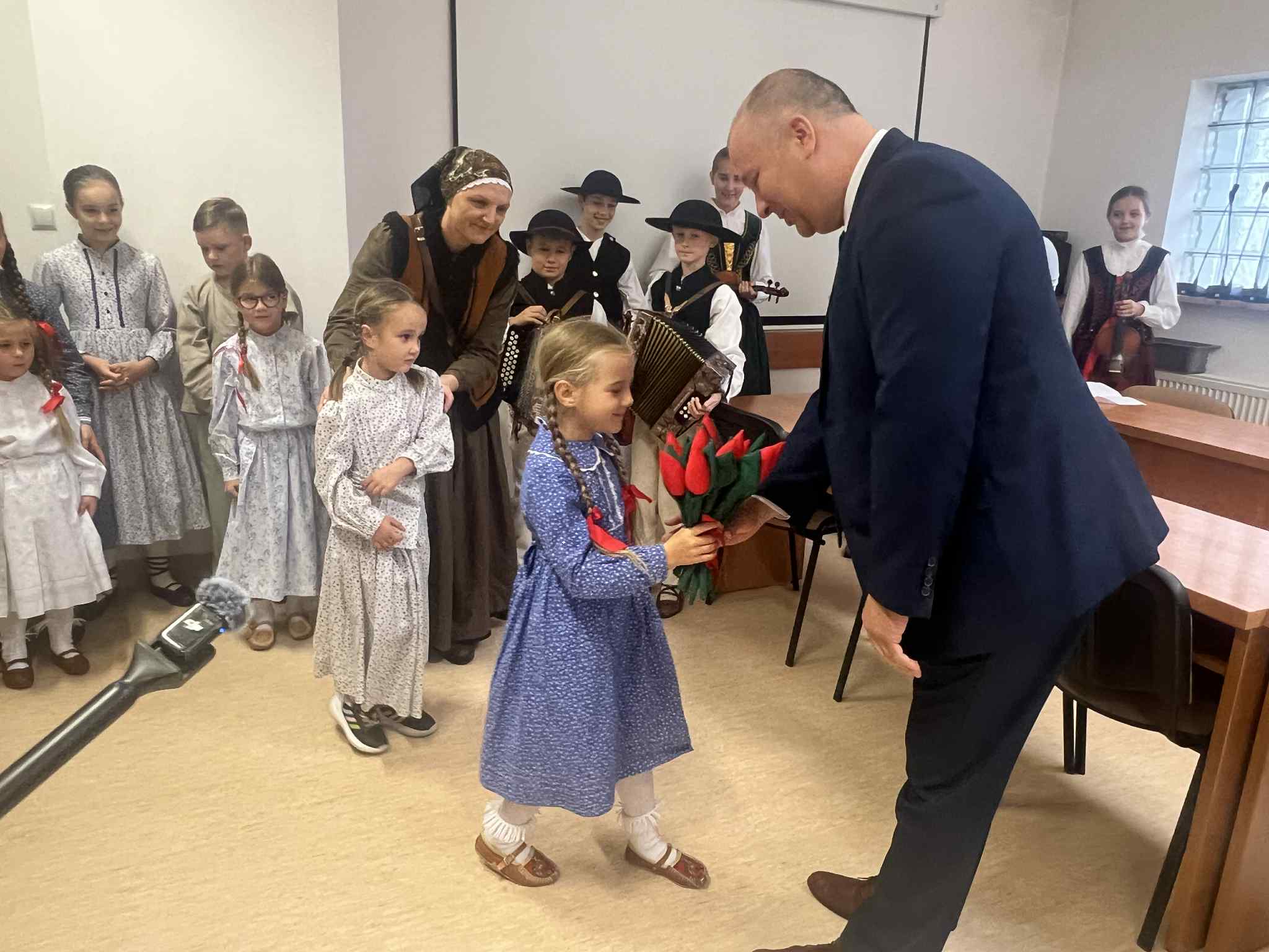 Następnie nastąpiła krótka prezentacja muzyczna, a później przedstawiciele najmłodszego pokolenia złożyli na ręce włodarza symboliczne podziękowanie.
