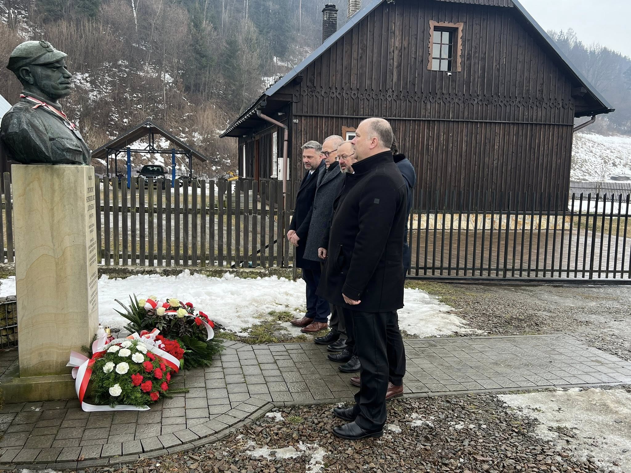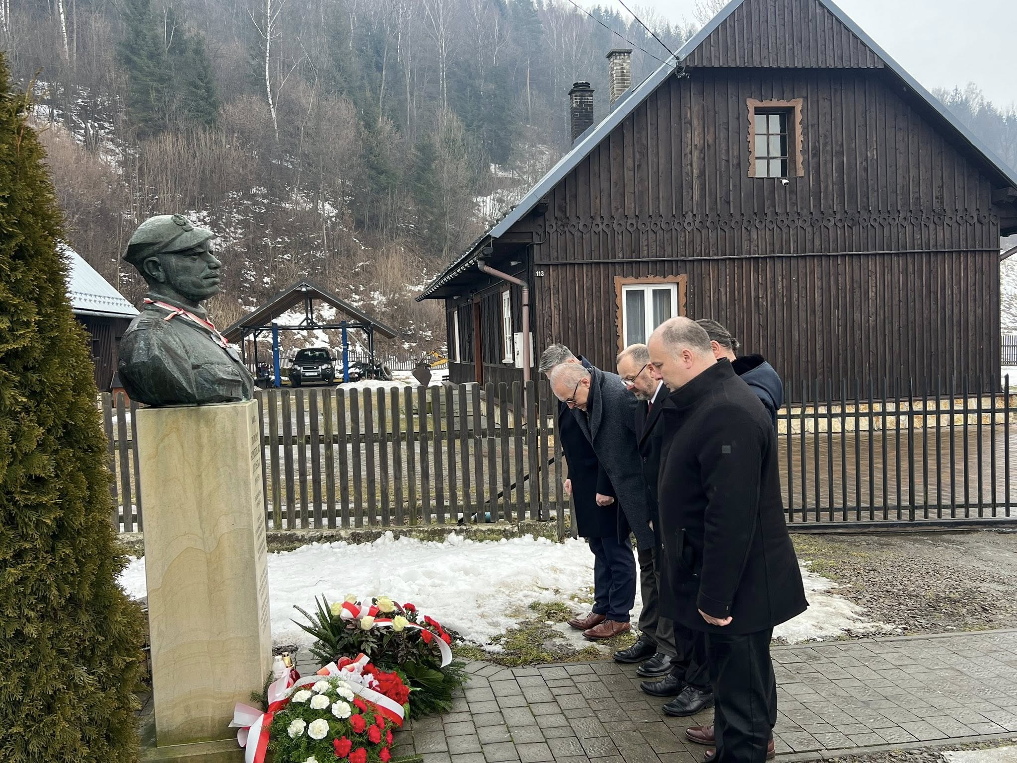 Z tej okazji okolicznościowe wiązanki kwiatów pod popiersiem majora złożyli dyrektor Oddziału IPN w Krakowie dr hab. Filip Musiał, naczelnik Oddziałowego Biura Upamiętniania Walk i Męczeństwa dr Maciej Korkuć, a także wójt gminy Jordanów Artur Kudzia, przewodniczący Rady Gminy Jordanów Zdzisław Filipek oraz sekretarz gminy Jordanów Rafał Lubaszka.