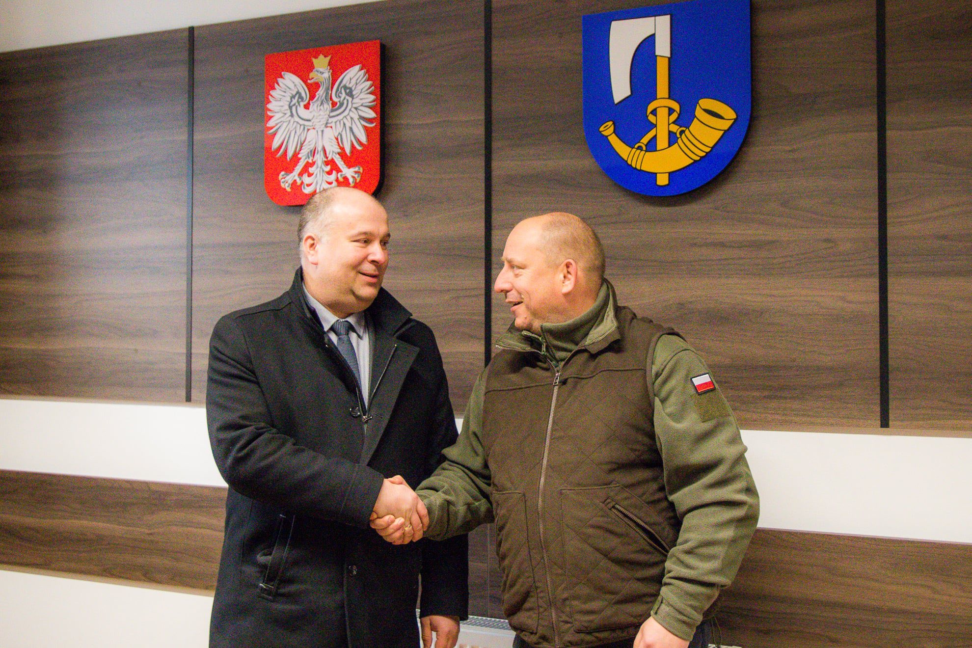 Dostojnego gościa przywitał Wójt Gminy Jordanów Artur Kudzia. Na wstępie podziękował za wizytę i przekazaną dotację. „Zakupiony sprzęt znacząco poprawi zdolności ochrony ludności i mienia, a także podniesie poziom bezpieczeństwa mieszkańców. Obyśmy jednak nie musieli z niego korzystać lub jak najrzadziej” – podkreślił gospodarz gminy.