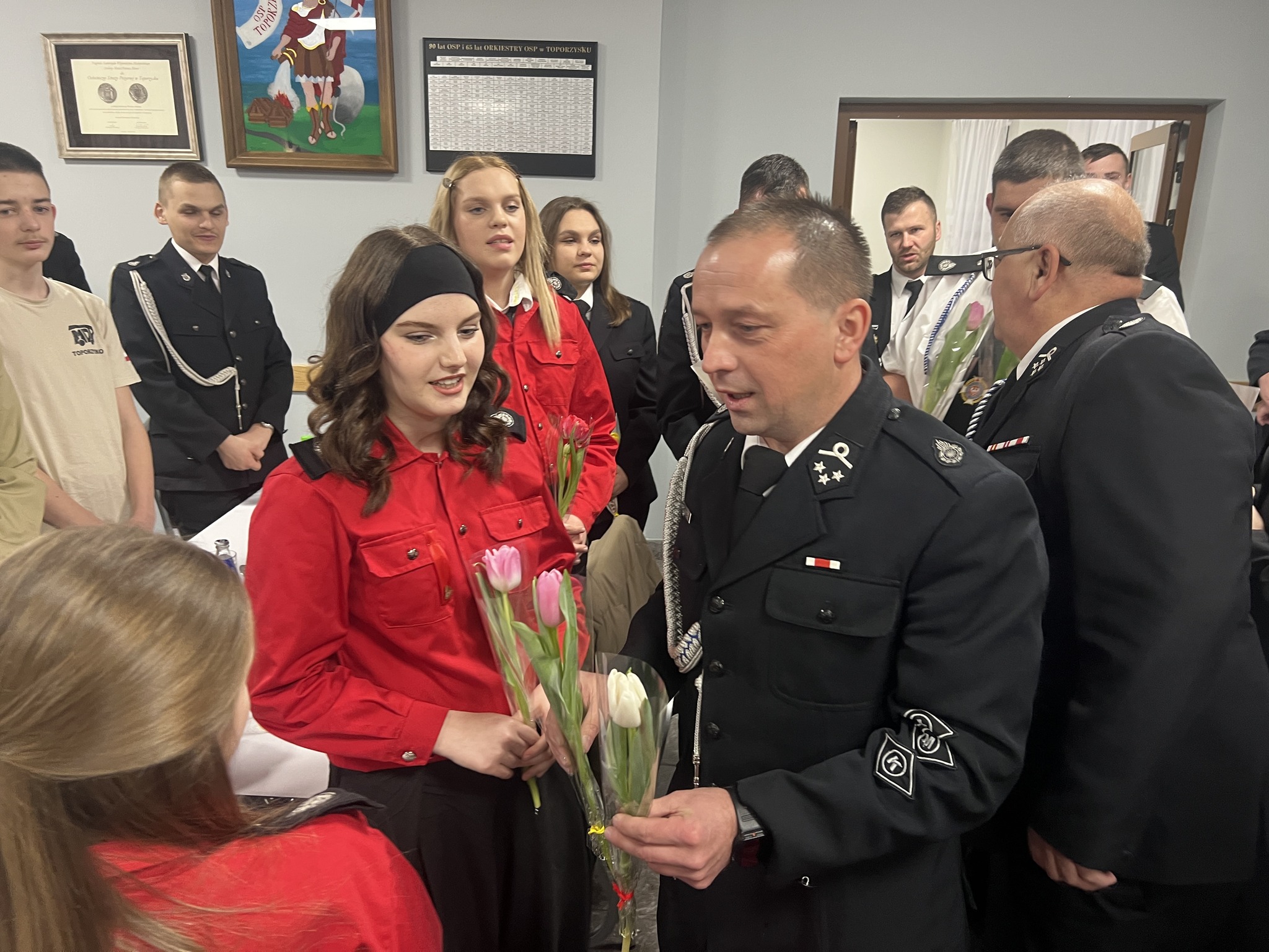 Strażacy pamiętali również o przypadającym jutro Dniu Kobiet. Na zakończenie zebrania wszystkie panie otrzymały symboliczne kwiaty, a druhowie wspólnie odśpiewali dla nich gromkie „Sto lat”.
