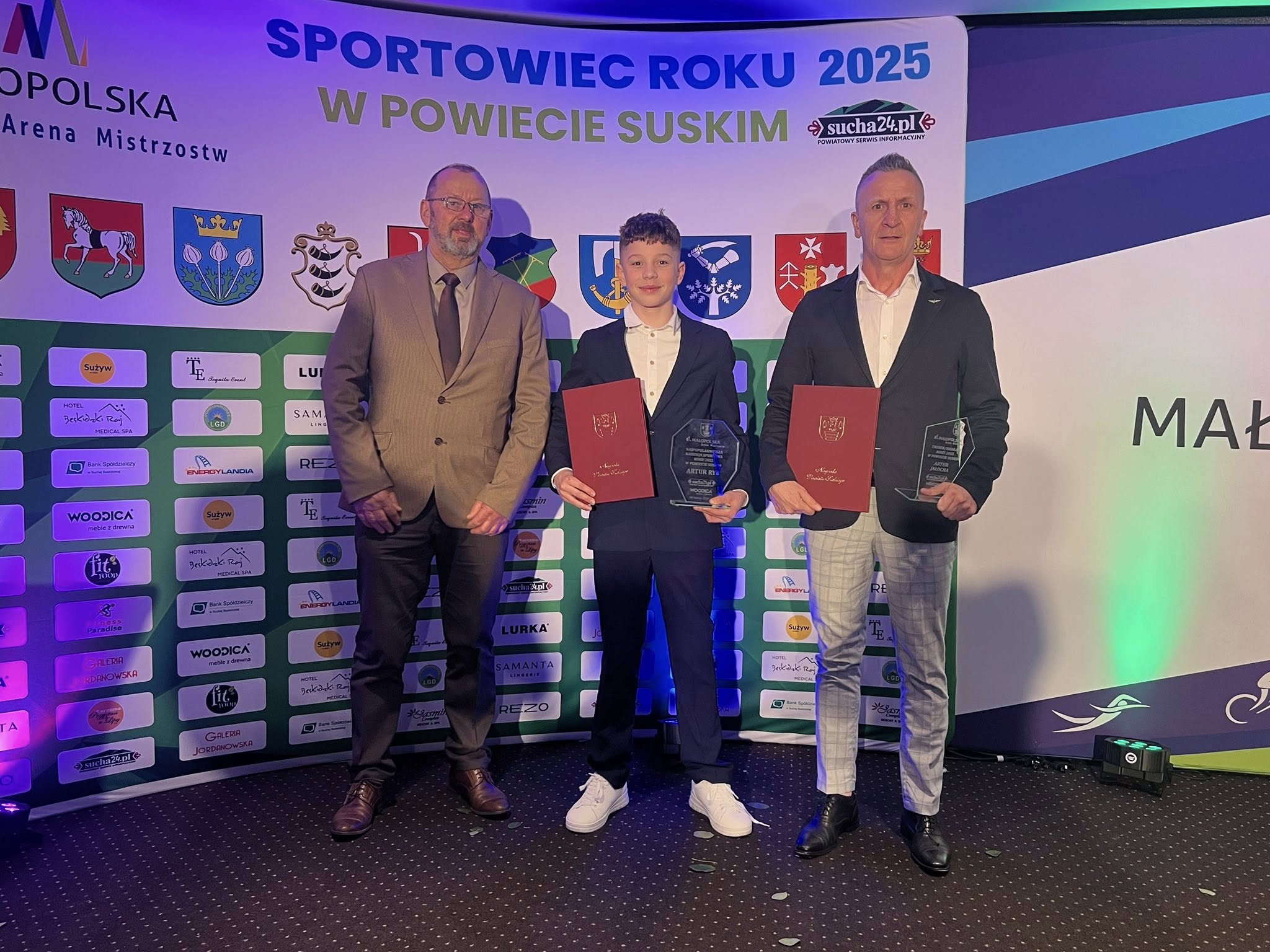 Nagrody naszym zawodnikom i trenerom wręczali starosta suski Józef Bałos, wicestarosta Zbigniew Hutniczak, przewodniczący Rady Powiatu Suskiego Jan Banaś oraz przewodniczący Rady Gminy Jordanów Zdzisław Filipek.