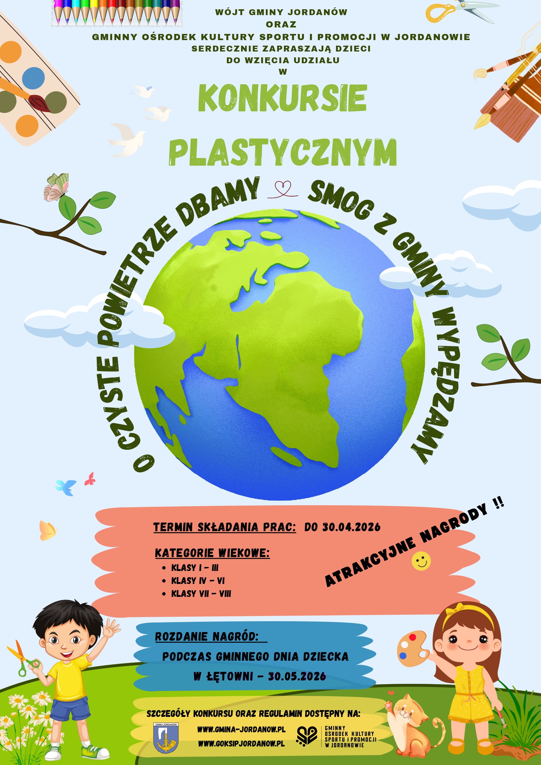 Wójt Gminy Jordanów oraz Gminny Ośrodek Kultury, Sportu i Promocji w Jordanowie zapraszają uczniów szkół podstawowych Gminy Jordanów do wzięcia udziału w konkursie plastycznym pod hasłem: