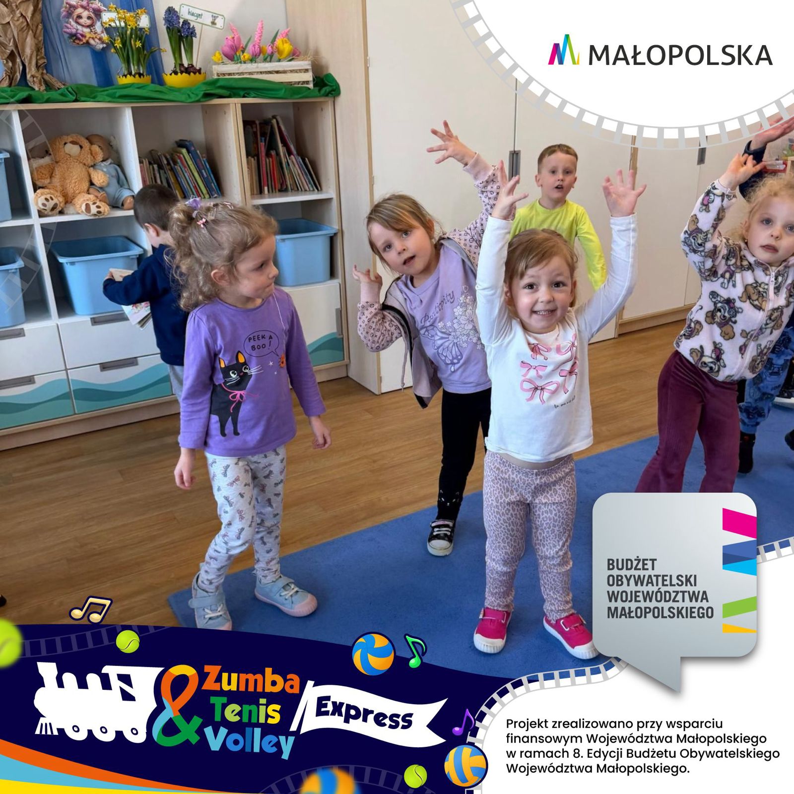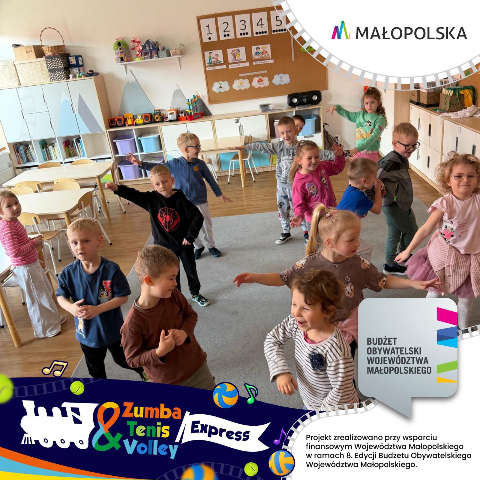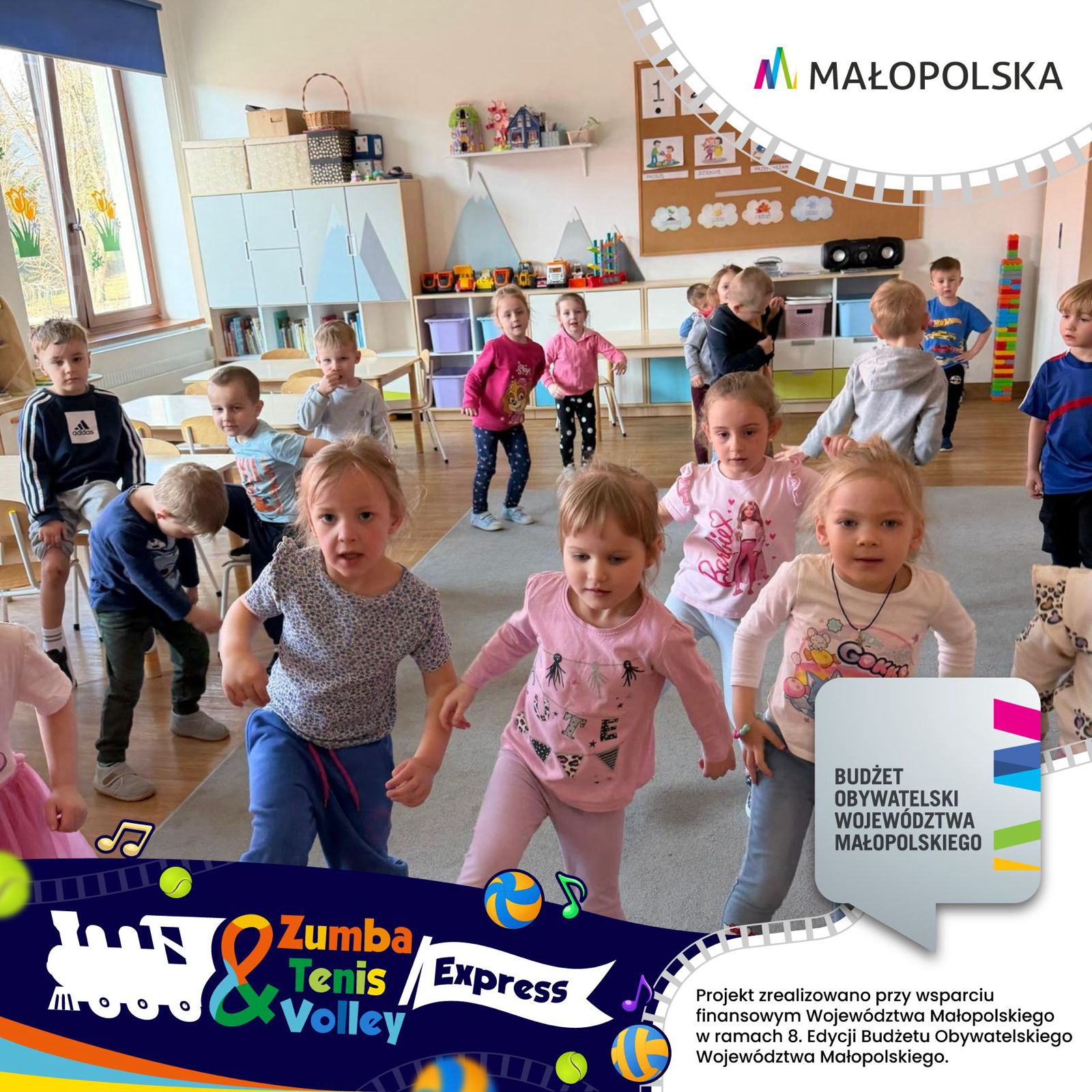 Z ogromną radością ogłaszamy start wyjątkoweo projektu „Zumba & Tenis & Volley Express – Pociąg dla Małych Sportowców”, który wyrusza w sportową trasę przez gminy Pcim, Tokarnia, Lubień i Jordanów.
