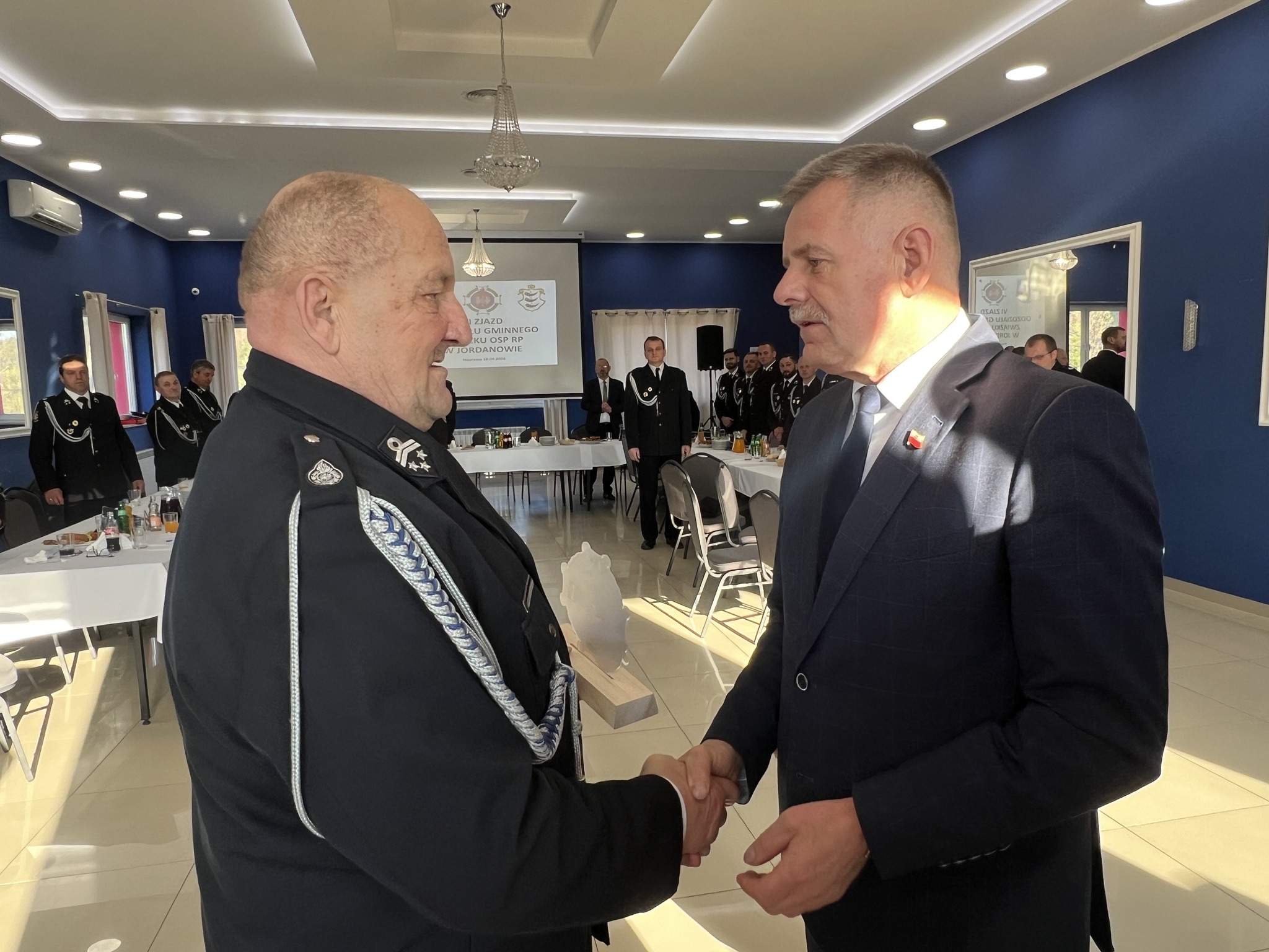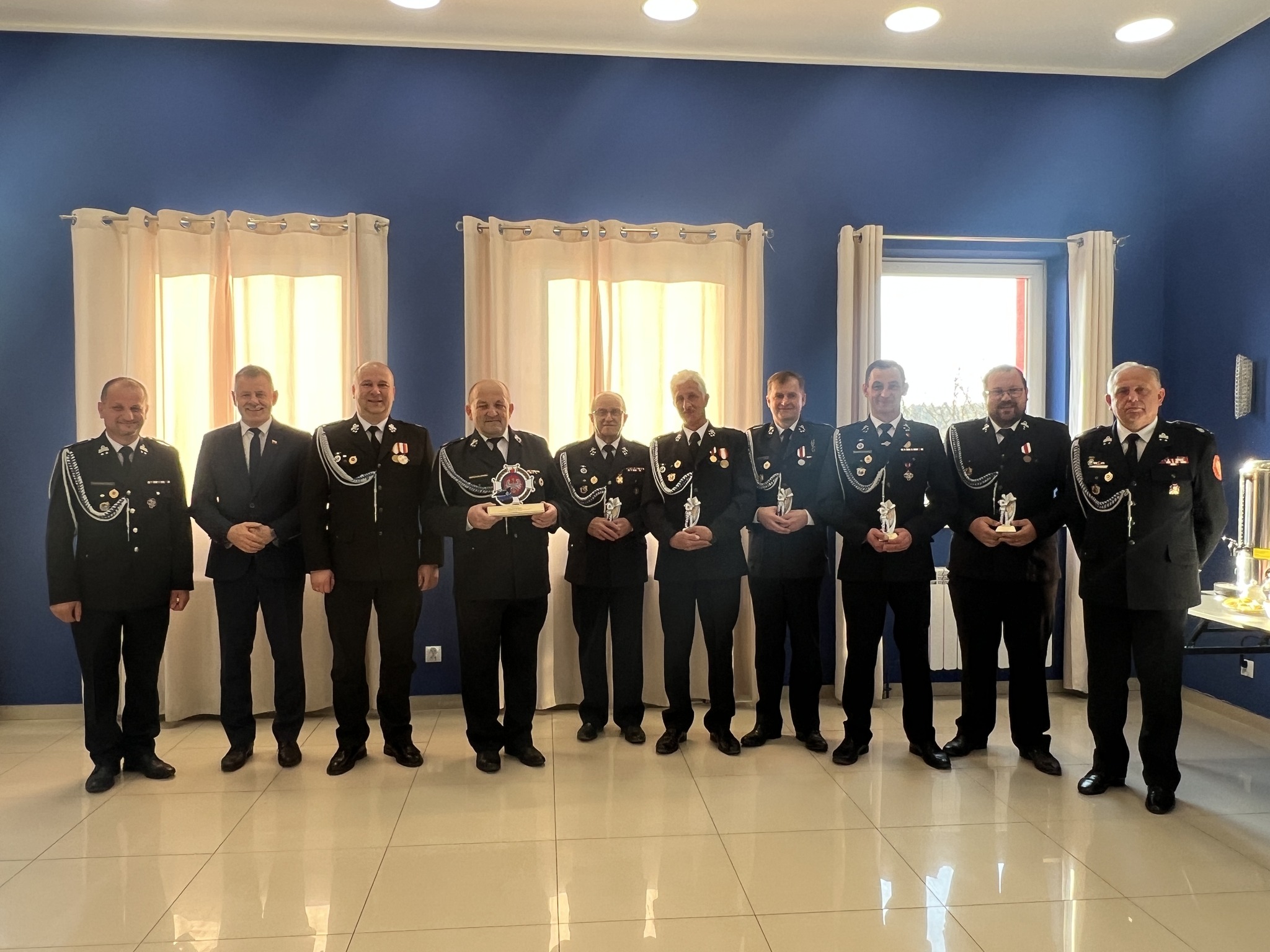 Miłym akcentem spotkania było wręczenie pamiątkowych statuetek dla odchodzących członków zarządu gminnego. Szczególne podziękowania skierowano także do dotychczasowego komendanta gminnego, Bogusława Wróbla, doceniając jego wieloletnią służbę i wkład w rozwój ochrony przeciwpożarowej na terenie gminy.